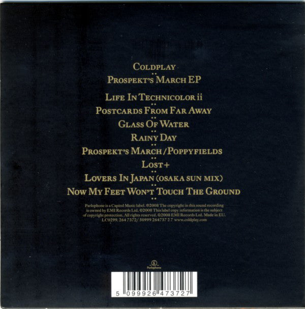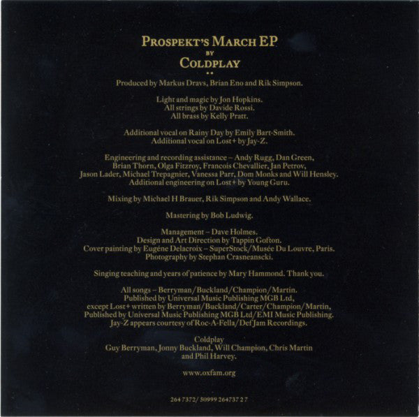 Comes in a slim cardboard sleeve. Cover painting by [a1868978 - SuperStock/Musée Du Louvre, Paris. Published by Universal Music Publishing MGB Ltd, except Lost+ Published by Universal Music Publishing MGB Ltd/EMI Music Publishing. Jay-Z appears courtesy of Roc-A-Fella/Def Jam Recordings. ℗2008 The copyright in this sound recording is owned by EMI Records ltd. ©2008 This label copy information is the subject of copyright protection. ©2008 EMI Records Ltd. Made in EU Catalog #s 2647112 & 50999 264711 2 9 printed on the CD refer to the CD when included as the second disc of the Coldplay - Viva La Vida (Prospekt's March Edition). takt is not printed on matrix.