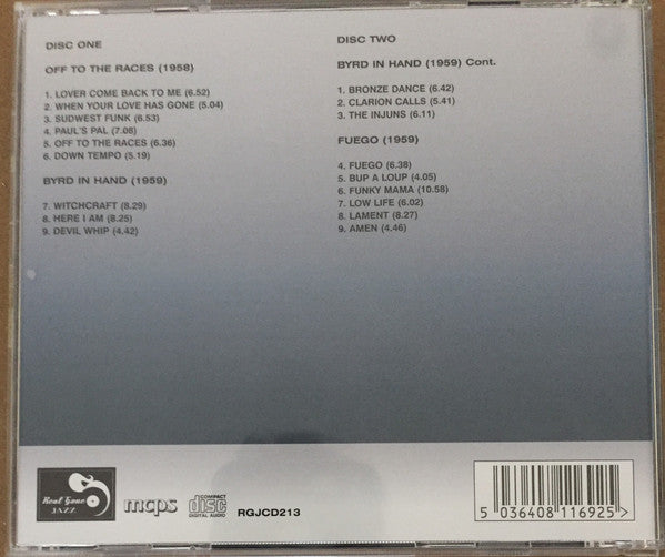 Contains three albums: Off To The Races (1958), Byrd In Hand (1959), Fuego (1959)