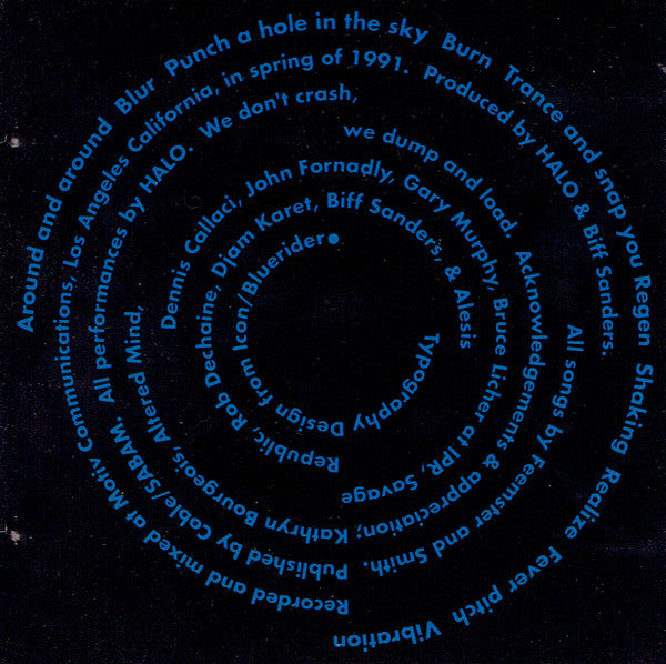 Recorded and Mixed at Motiv Communications, Los Angeles California, in spring of 1991. Published by Coble/SABAM. We don't crash, we dump and load. Acknowledgements & appreciation; Kathryn Bourgeois, Altered Mind, Dennis Callaci, John Fornadly, Gary Murphy, Bruce Licher at IPR, Savage Republic, Rob Dechaine, Djam Karet, Biff Sanders & Alesis. Play this recording at maximum volume. Headphones are advised for audiophiles.