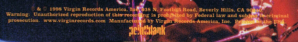 Jewel case with 8-page booklet. Printed in the USA. ℗ & © 1998 Virgin Records America, Inc.