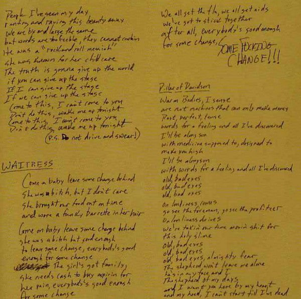 Early pressings came in a transparent red colored CD tray with a 12-page folded booklet. Track 14 is not mentioned on the cover. Recorded at Pachyderm Studio, Cannon Falls, MN. Mixed at Music Head Studios, Lake Geneva, WI. Mastered at Sterling Sound, New York, NY. Publishing © 1994 Loco de Amor Music/ Audible Sun Music (BMI) ℗ © 1994 Radioactive Records, J.V. Manufactured for MCA Records, Inc. Distributed by BMG, a Bertelsmann Music Group Company. Tray inlay: Printed in Germany Disc: Made in Germany