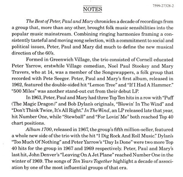 Peter, Paul And Mary* - The Best Of Peter, Paul And Mary / Ten Years Together (CD, Comp) (Very Good Plus (VG+))