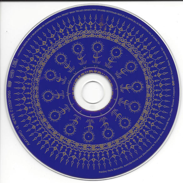 Explicit language version. Standard jewel case with embossed warner ‘W‘ and a golden '():format(jpeg):mode_rgb():quality(96)/discogs-images/A-293637-1406996374-5786.jpeg.jpgLove Symbol' imprint. Accompanying sticker reads: This version of 'Love Symbol' contains language that some people may find offensive Back tray insert: Paisley Park Records, manufactured and distributed by Warner Bros. Records Inc., a Time Warner Company © ℗ 1992 Warner Bros. Records Inc. for the U.S. and WEA International Inc. for the world outside of the U.S. Made in Germany by Warner Music Manufacturing Europe Tracks 6 & 17 are segues and don't appear in the tracklist Track 8 is printed as "[Eye symbol Wanna Melt With U" 12-panel leporello: [Tracklist with lyrics and detailed credits & photos Tracks 1, 13: © 1992 NPG Publishing ASCAP Track 2: © 1992 NPG Publishing/Michael Anthony Music ASCAP Tracks 3 to 5, 7 to 12, 14 to 16, 18: © 1992 Controversy Music, admin. by WB Music Corp. ASCAP Track 12: Contains a sample of: "I Know You Got Soul" performed by Eric B. & Rakim, under license from Polygram Special Products, a division of Polygram Group Distribution, Inc. Published by Songs of Polygram International Inc./Robert Hill Music, Inc. BMI Also contains a sample of "Jazz It Up (Jazz Mix)" performed by C.F.M. Band, courtesy of Reynold "Crazy Frenchman" Deschamps Also contains a sample of "Niggaz 4 Life" performed by N.W.A., courtesy of Priority Records. Written by A. Young, L. Patterson, T. Curry, G. Clinton, B. Morrow [sic., B. Collins. Published by Ruthless Attack Musik/Sony Songs, Inc./Bridgeport Music, Inc. BMI Track 14: Contains a sample of "Tramp" as performed by McCrackin [sic. and Fulsom, courtesy of Virgin Records America, Inc./Ace Records Ltd./Blues Interactions, Inc. Track 18: Contains a sample of "God Made Me Funky" performed by The Headhunters, courtesy of Arista Records, Inc. Published by Cigum Music. Incorrect durations appear (in Roman numerals) in booklet for tracks 1, 6:25; and 11, 4:04.