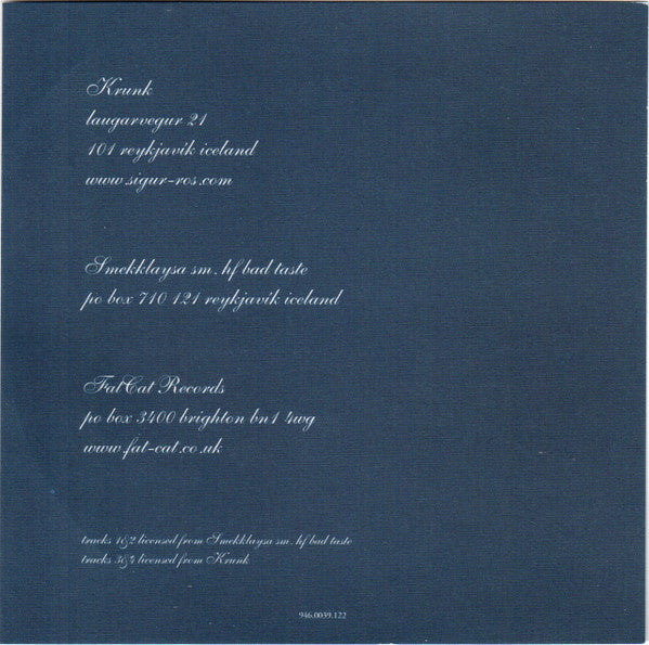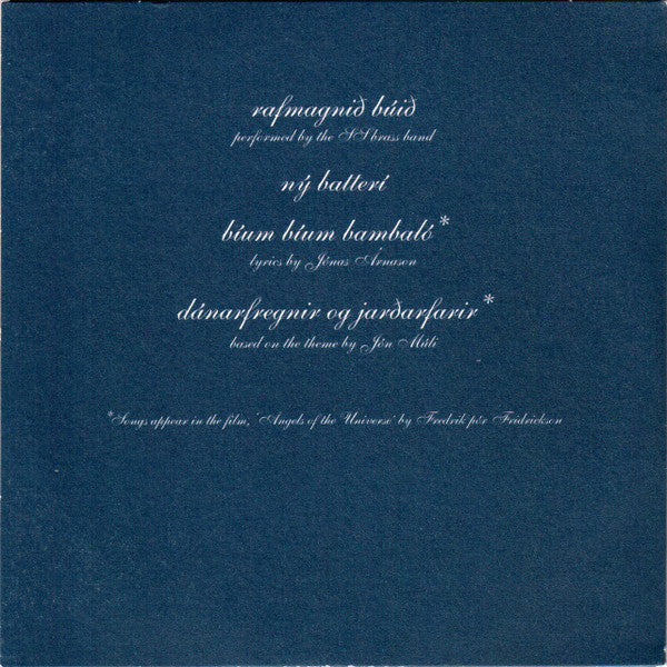Tracks 1 & 2 licensed from Smekkleysa sm. hf Bad Taste. Tracks 3 & 4 licensed from Krunk. Tracks 3 & 4 appear on the film 'Angels Of The Universe' by Fredrik Thór Fridriksson. Includes an inlay card instead of an inlay cardboard sleeve, also the angel image is different from that in [r80388.