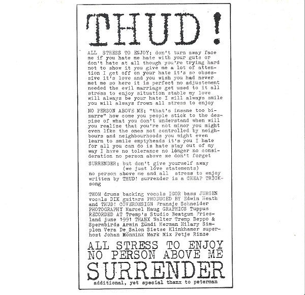 Recorded at Tremp's Studio Beatgum Friestland, June 1991. Track B originally performed by Cheap Trick Limited Edition Seven Inch Series Side A plays at 33 ⅓ RPM. Side B plays at 45 RPM.