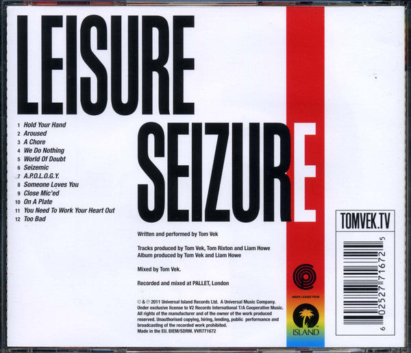 Recorded and mixed at PALLET, Dalston, East London. Additional recording on 6 and 7 at El Pie, Buenos Aires, Argentina. Mastered at LOUD. Published by Universal Music Publishing. © & ℗ 2011 Universal Island Records Ltd. A Universal Music Company. Under exclusive license to V2 Records International T/A Cooperative Music Black and white portrait: Sonia Melot Mixing console image: Photography by Sonia Melot for Recession Studio (with thanks to Stuart Sinclair and Rory Attwell), retouching by Tom Wandrag. The CD Jewel Case was developed in 1981-82 by British designer Peter Doodson while working for the Dutch electronics company Phillips, inventors of the Compact Disc.