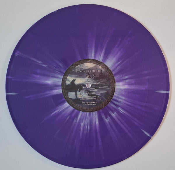 Double LP album pressed in vibrant purple splatter; white starbursts in a dramatic sunset. Deluxe, matte varnished, Gatefold packaging and insert featuring artwork by Adam Burke & Adrian Baxter.